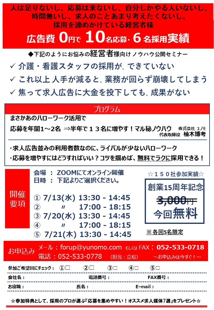 【経営者様向け】2022年7月「ハローワーク活用術」無料webセミナー開催のお知らせ