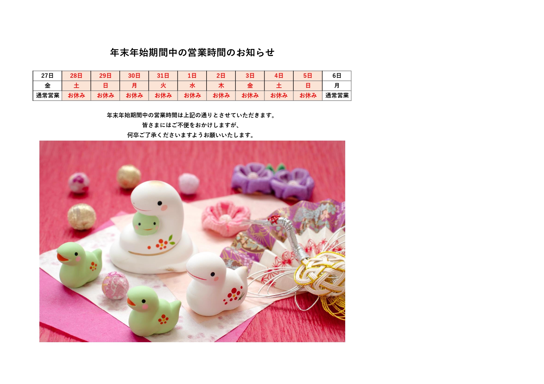 株式会社ユノモでは、年末年始休暇の期間を上記の通りとさせていただきます。