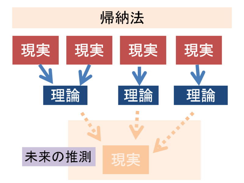 帰納法とは、類似の事例をもとにして、一般的法則や原理を導き出す推論法のこと。